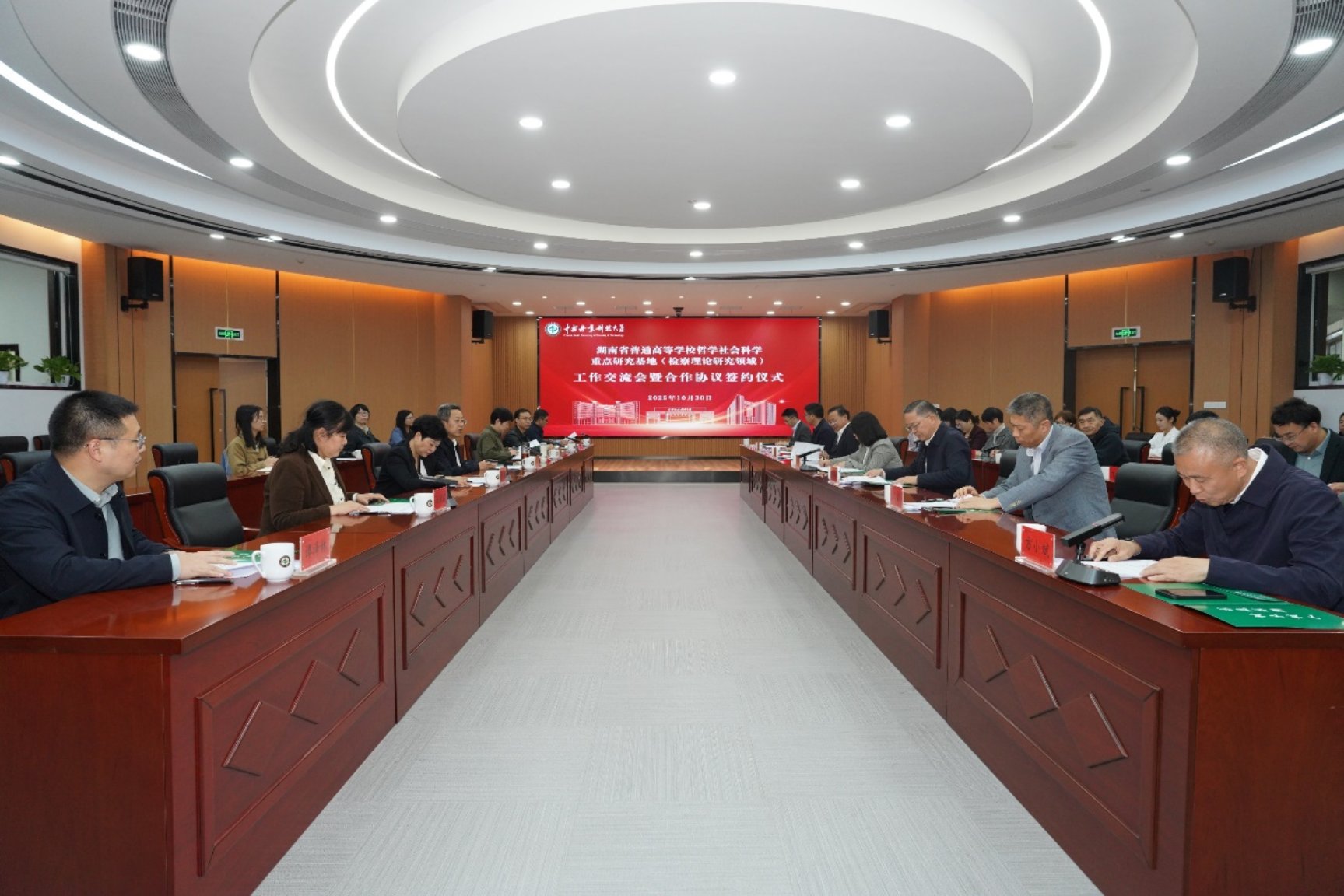 2025年10月30日,湖南省普通高等学校哲学社会科学重点研究基地(检察理论研究领域)工作交流会暨合作协议签约仪式在中南林业科技大学崇德楼成功举办。来自湖南省人民检察院、湖南省教育厅及多所高校的领导专家齐聚一堂,共商校检合作新机制,共绘检察理论研究新蓝图。我校副校长周智华教授、明陞m88官网